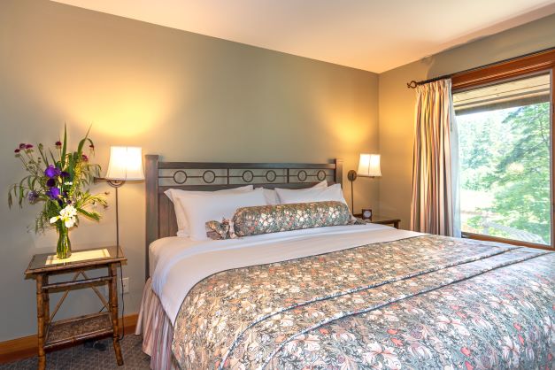 Our spacious Premier Suites enjoy treed views of the harbour from private balconies. Every Premier Hillside Suite offers the comforts of a living room with propane fireplace; a king size bed; a large soaking tub and separate shower with heated floors; heated towel rack; and air conditioning for warm summer nights.